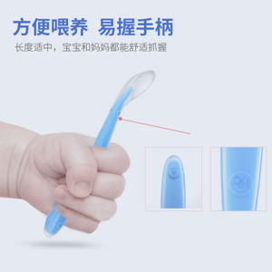 7、柔軟的硅膠小軟勺專為嬰兒設計,幫助寶寶適應從奶瓶到勺子的喂養轉變,無毒無味,不含化學物質,耐高溫煮沸,耐老化,不起粘性。產品硅膠部分可能吸收食物顏色后變色但不影響使用性能,適合剛學習進食的嬰兒使用