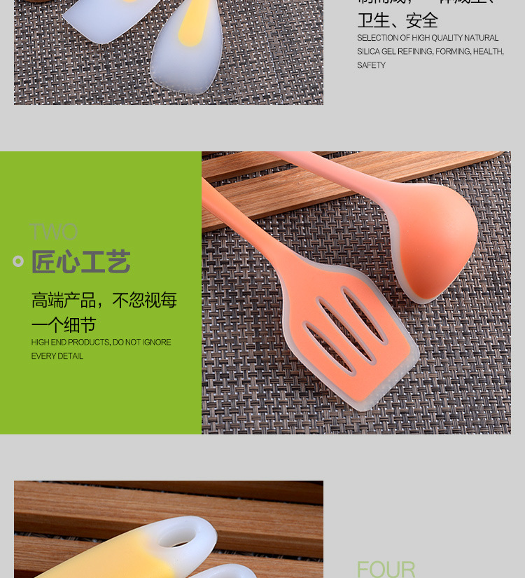這套硅膠廚具完美的適用于家庭廚房,安全環保耐用,很好的保護了