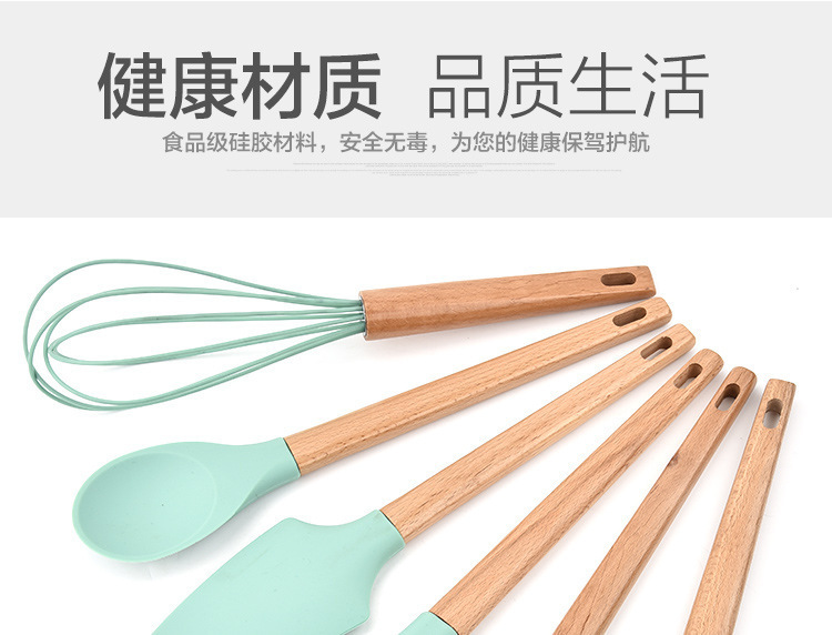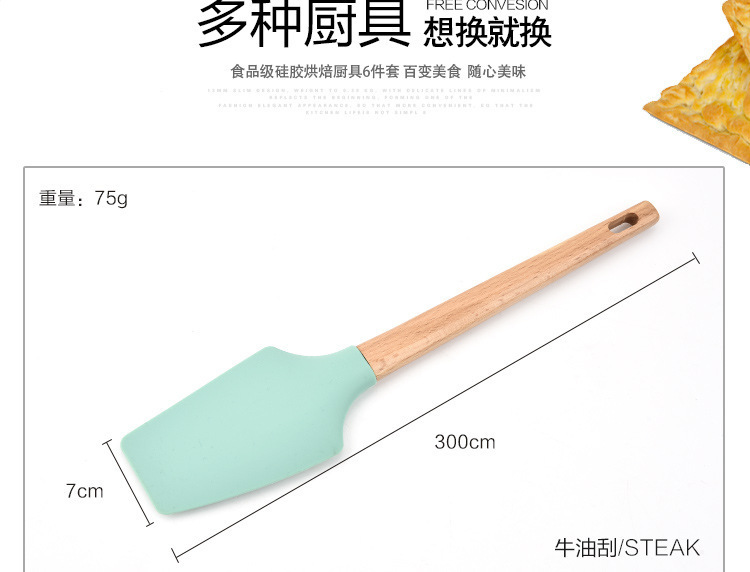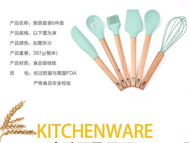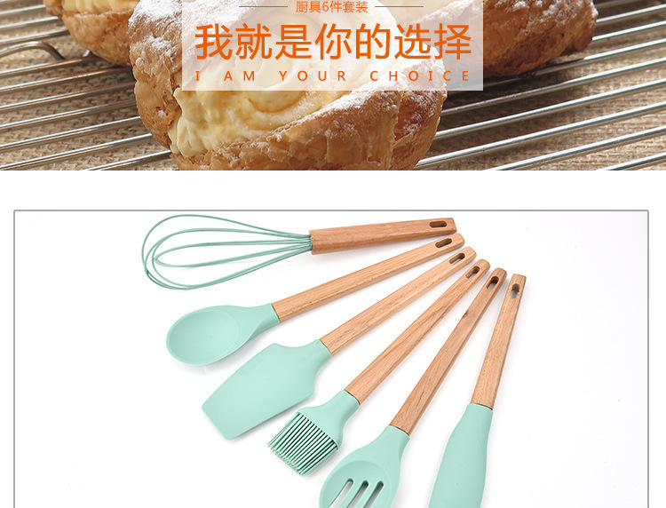 木柄硅膠廚具6件套,硅膠廚具六件套木柄