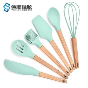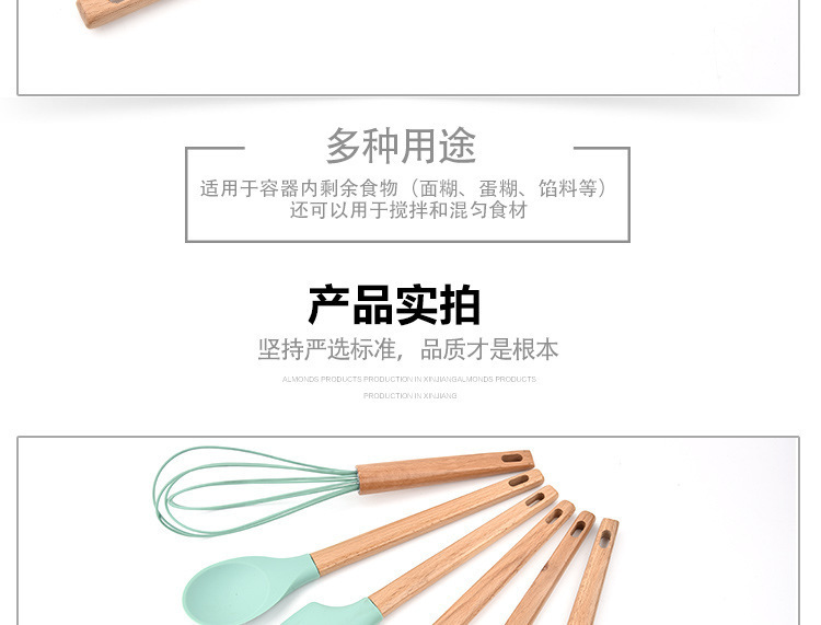 • 木柄硅膠廚具6件套,硅膠廚具六件套木柄