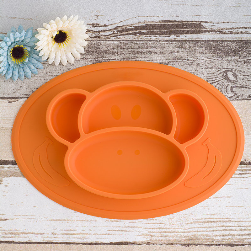 - 猴子硅膠餐盤,猴臉兒童硅膠餐盤,立體大嘴猴硅膠餐盤