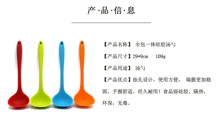 全包一體式硅膠湯勺,一體式硅膠長柄湯勺,全包硅膠大號湯勺