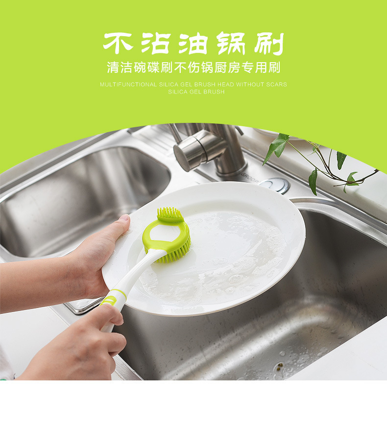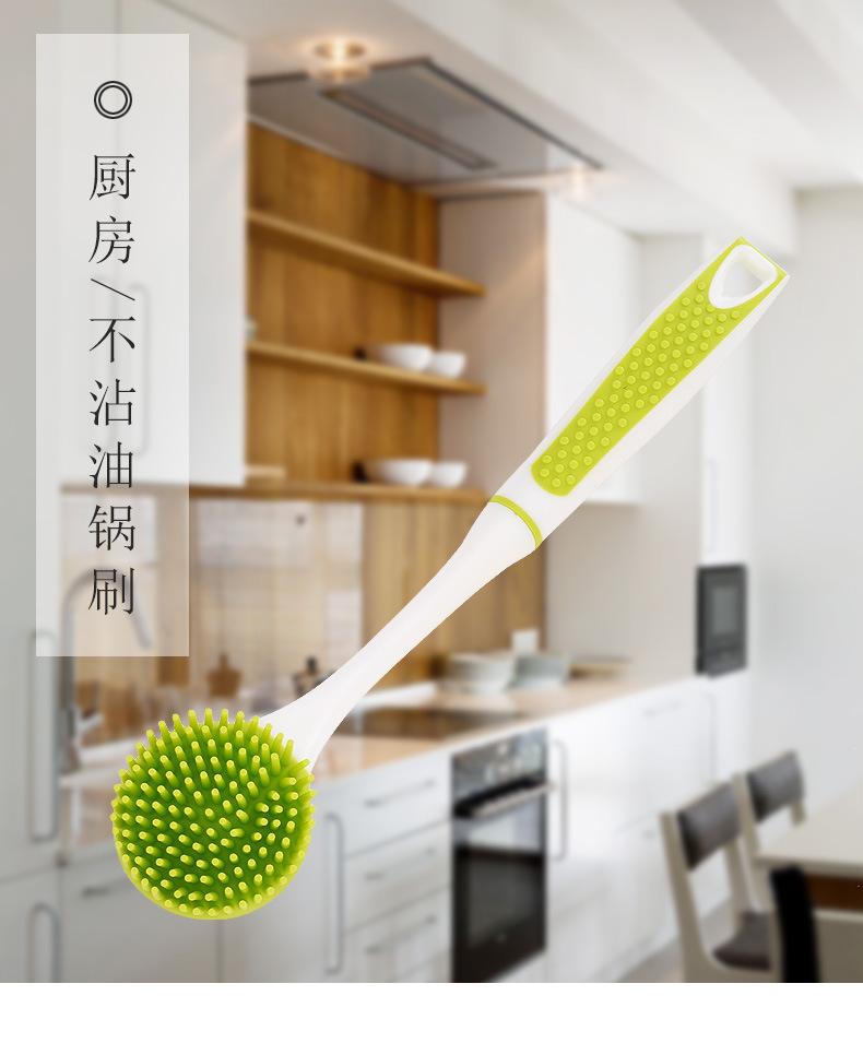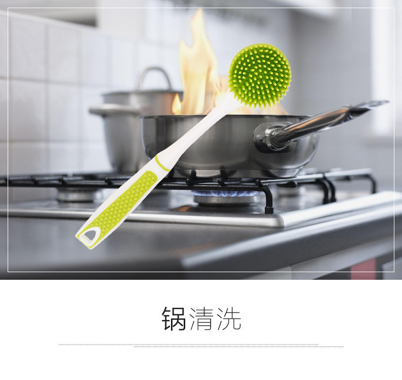 - 硅膠長柄清潔刷,硅膠不沾油長柄刷子,硅膠廚房洗碗刷