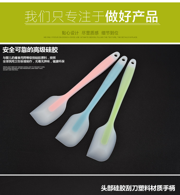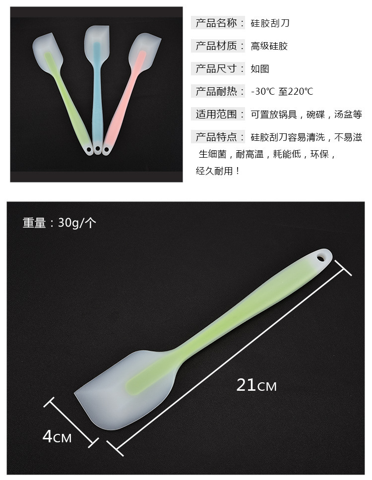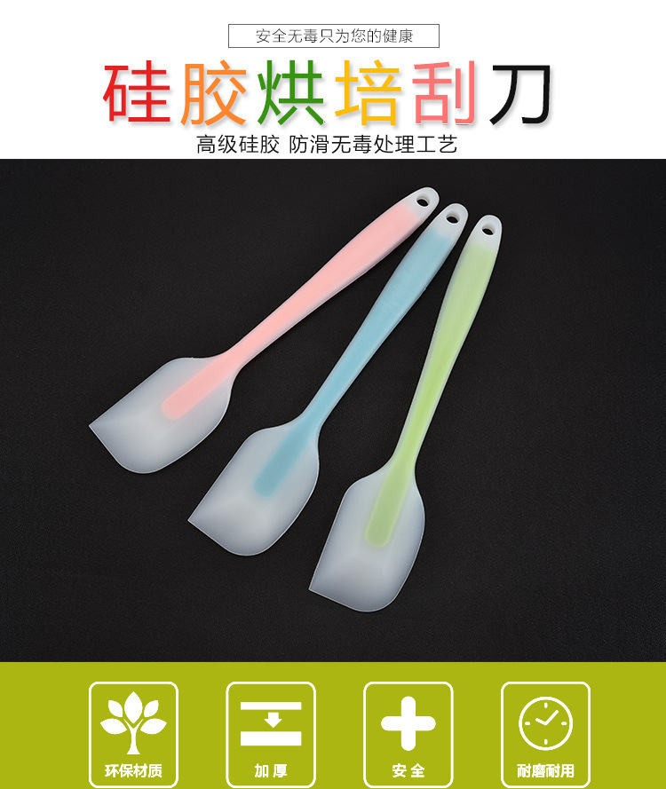 1、硅膠刮刀容易清洗,不易滋生細菌,耐高溫,耗能低,環保,經久耐用