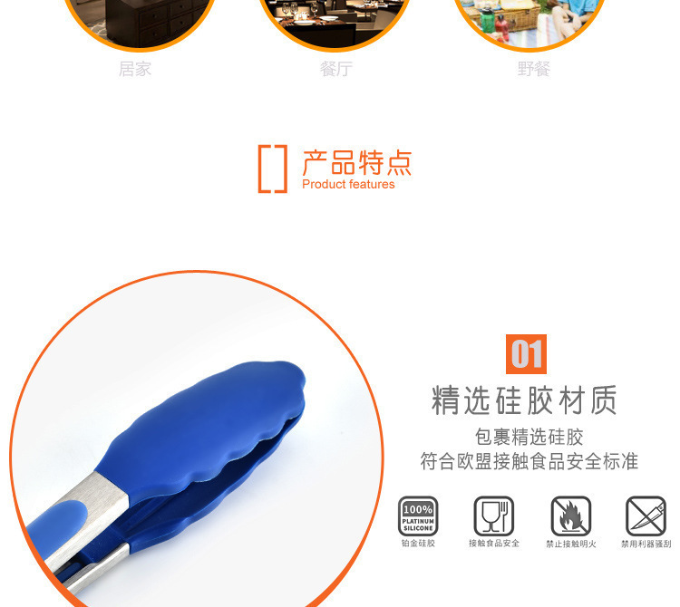 - 硅膠食物夾,硅膠不銹鋼燒烤夾,硅膠不銹鋼自助餐夾