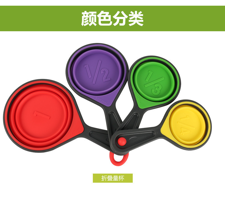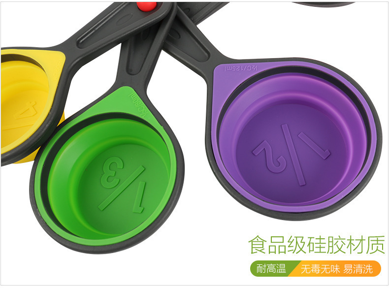 • 硅膠折疊量杯套裝,硅膠量杯四件套,硅膠折疊量勺4件套