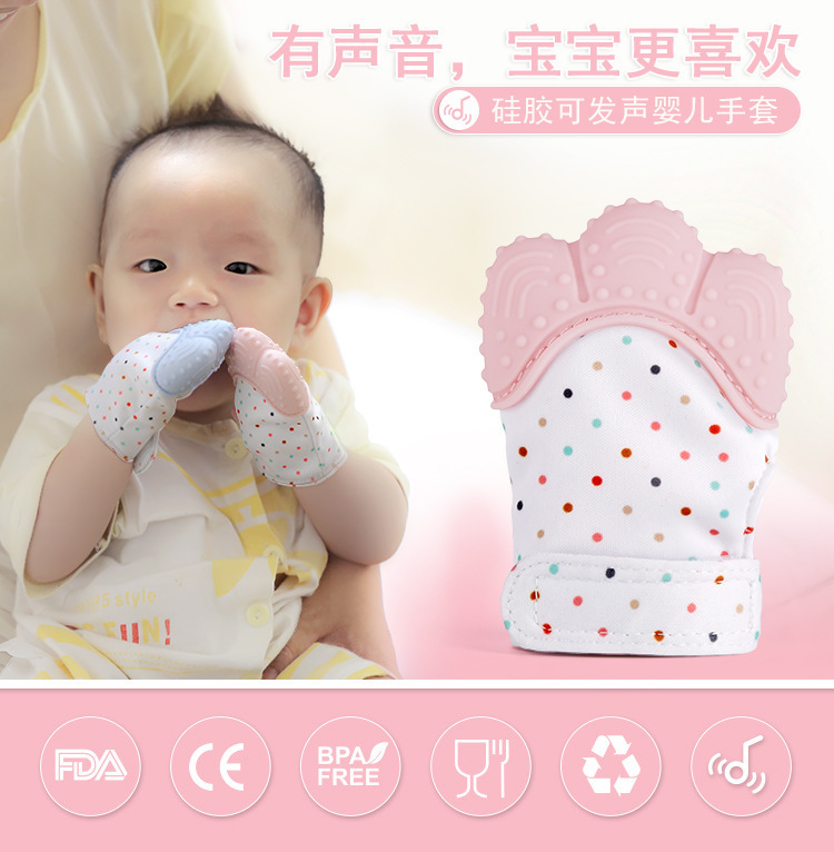 - 硅膠嬰兒手套-東莞食品級硅膠嬰兒磨牙手套定制工廠,為防止寶寶吃進嘴里,指端采用食品級硅膠,防滑環保,保護寶寶細嫩的雙手,更不用擔心寶寶爬行時小物品吃進寶寶嘴里。設計方便,隨身攜帶。手腕為魔術貼設計,可調節大小,不分左右手,雙手都可戴。