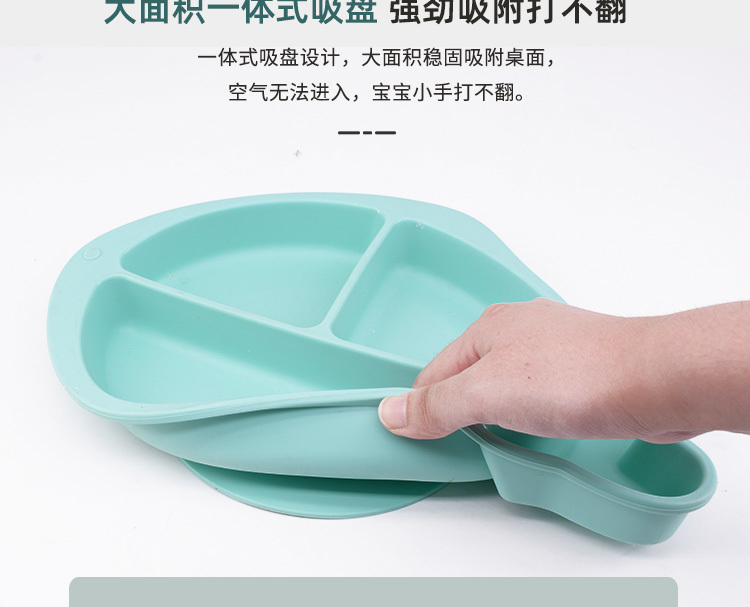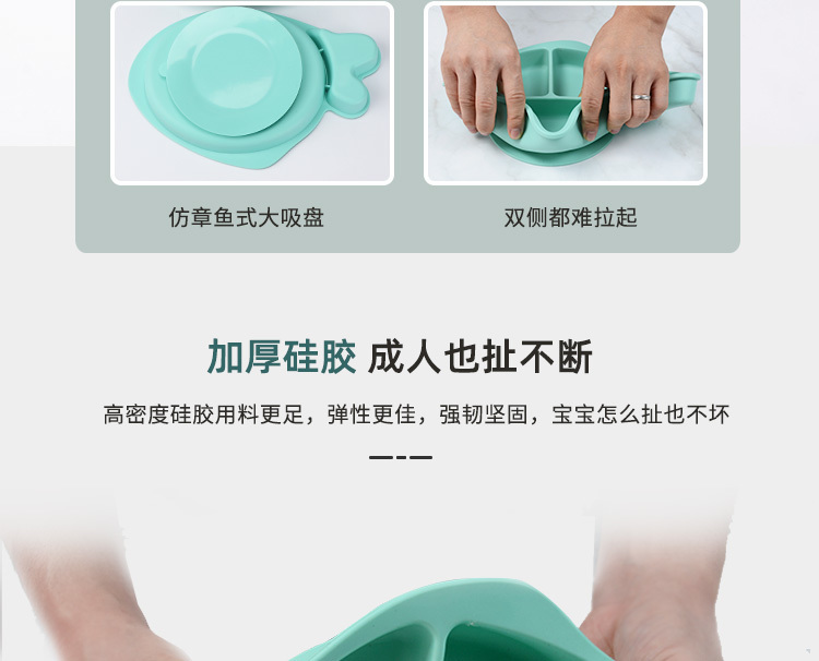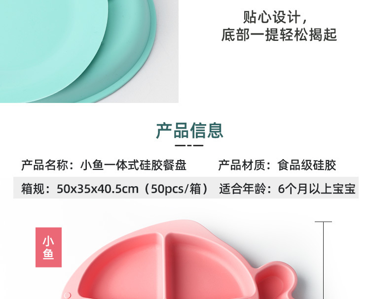 • 小魚硅膠餐盤-一體式分格吸盤防摔兒童食品級(jí)硅膠餐盤
