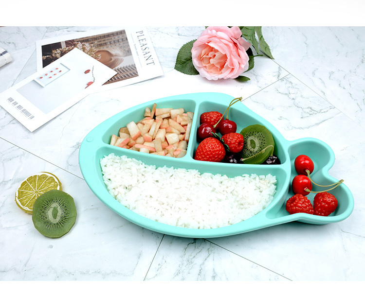 小魚硅膠餐盤-一體式分格吸盤防摔兒童食品級(jí)硅膠餐盤